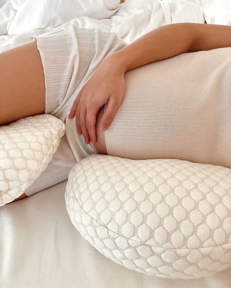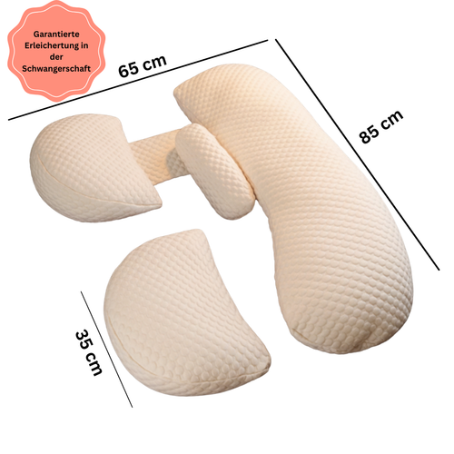 Endlich wieder erholsam schlafen dank dem 3-teiligen Stützsystem das deinen Babybauch hält, deine Hüfte ausrichtet und dich sanft die ganze Nacht in der optimalen Seitenlage hält
